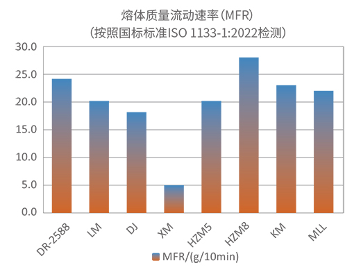 ■ 采用雙螺桿擠出機將DR-2588與線性低密度聚乙烯(LLDPE)混合制成70%濃度的色母粒,按照國際標準ISO 23900-5:2015的要求,采用低密度聚乙烯(LDPE)作為基礎樹脂將色母粒稀釋至8%的鈦白粉濃度的混合料,檢測過濾壓力值(FPV)。