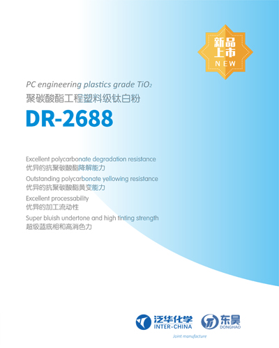 DR-2688是一種專為聚碳酸酯(PC)體系生產而設計的金紅石型二氧化鈦顏料,采用特殊的無機和有機表面處理工藝,有效解決了聚碳酸酯等聚合體加工過程中粘度和亮度降低、色相黃變、材料脆化等問題,能確保聚碳酸酯等工程塑料的光學、力學等性能,具有優異的聚碳酸酯體系抗降解、抗黃變性能。