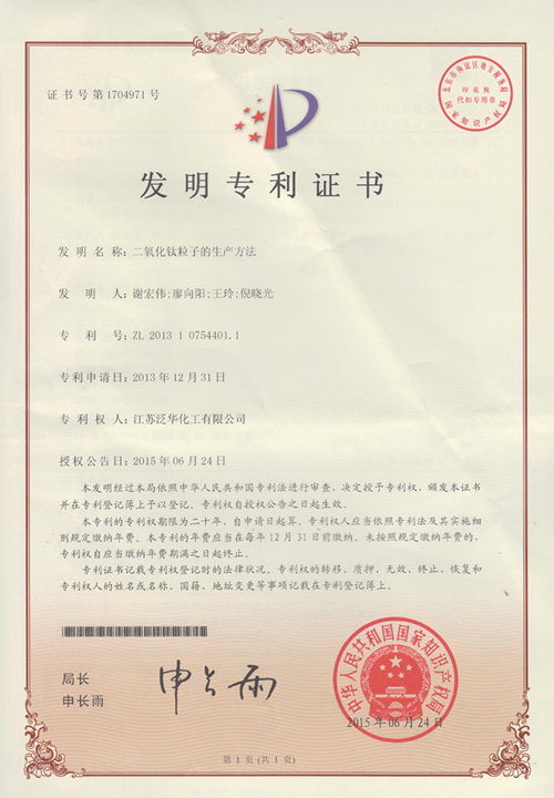 泛華化學及所屬各子公司已獲發(fā)明專利授權20項,實用新型專利授權5項。